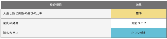 短距離走、短めの水泳、HIT、筋トレなんかの一瞬で大きな力を出すのが得意なタイプだよ。