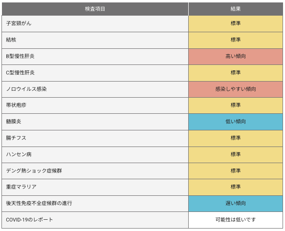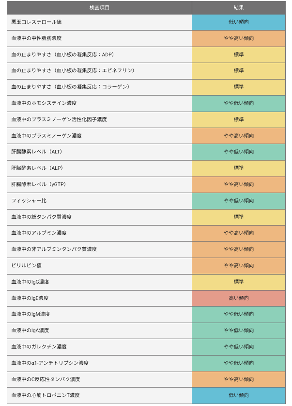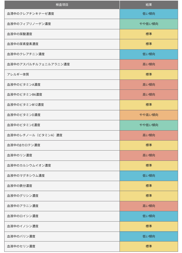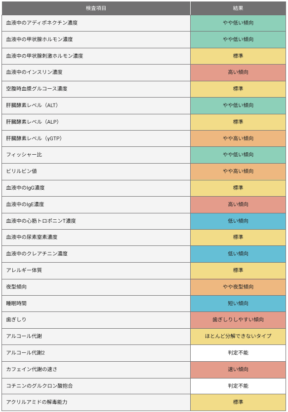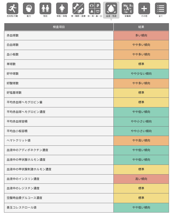 みんなが興味ありそうな項目や、私の結果が標準から大きく外れた項目をピックアップしてくね~